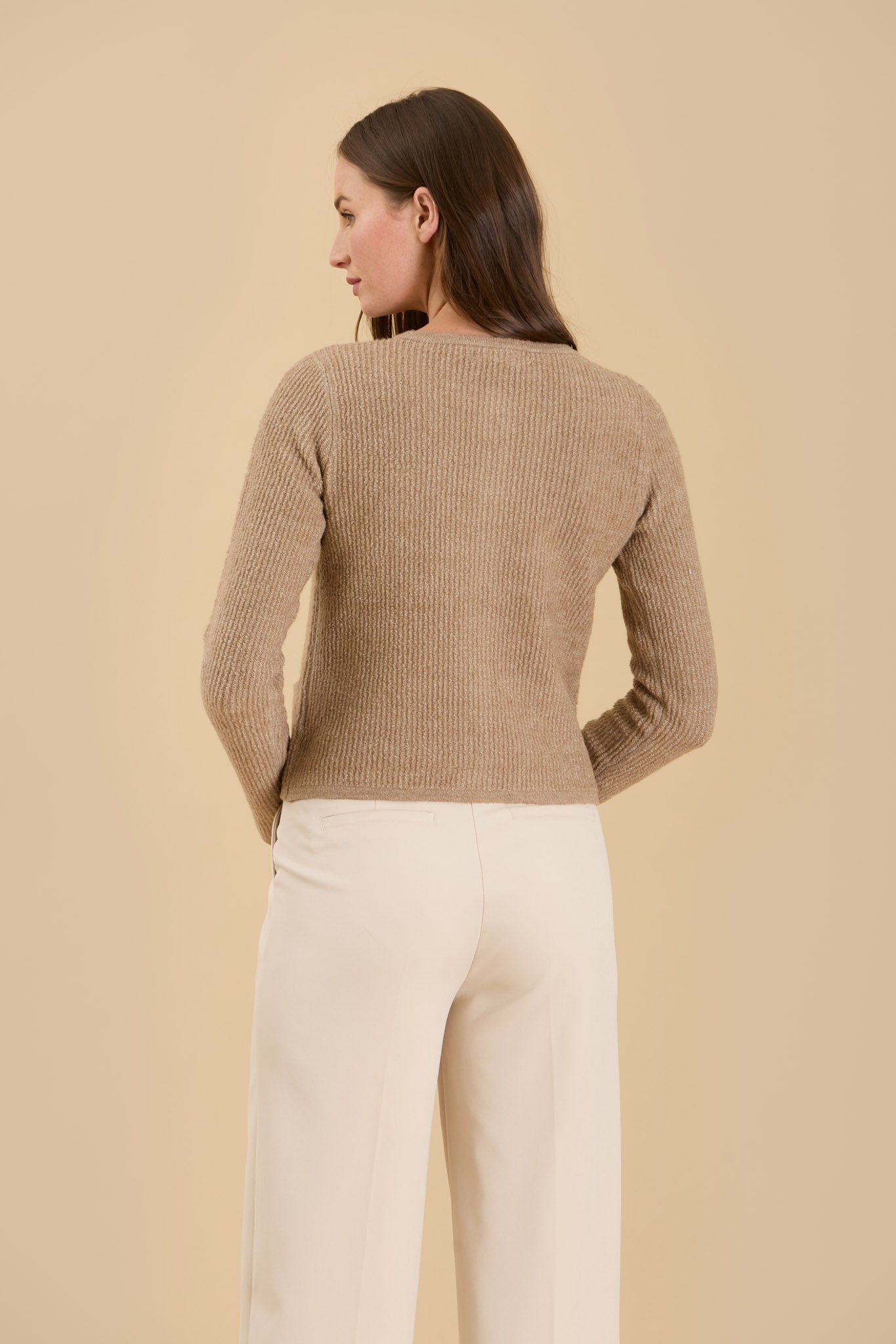 Round Neck Gold Button Knit Cardigan - Taupe (S-L)